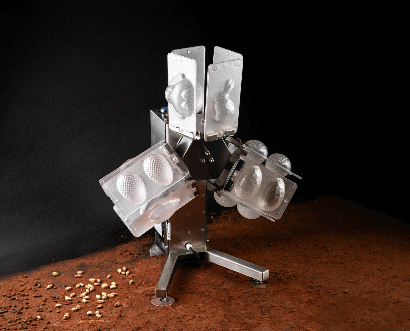 With our new "Mini Spin" desk spinning machine, the investment threshold is significantly lowered and to the same time the manual effort is reduced. So the confectioner has more time for the work with chocolate, filling and designing.