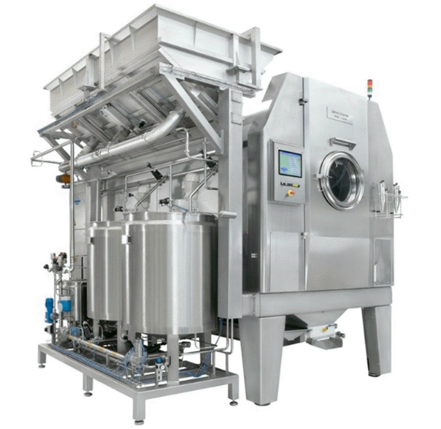Energy-efficient coating system DRIACOATER DRC for the production of high-quality dragees for the confectionery industry. The DRC series coaters for the production of high-quality sugar dragees set standards, especially in terms of energy efficiency. The special air flow through the perforated coating drum guarantees that 100% of the treated process air is used to dry the dragees in the sugar coating process. Measurements have shown that this technology can save around 33% of the energy required for the process, consisting of cooling, heating and electrical energy. The use of the DRC coater therefore makes a significant contribution to protecting the environment. Depending on the utilization of the coater, the additional financial outlay for this efficient coating principle can pay itself after just one year. We are happy to show our customers the savings of their project using calculations.